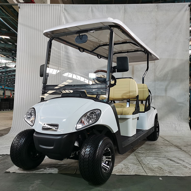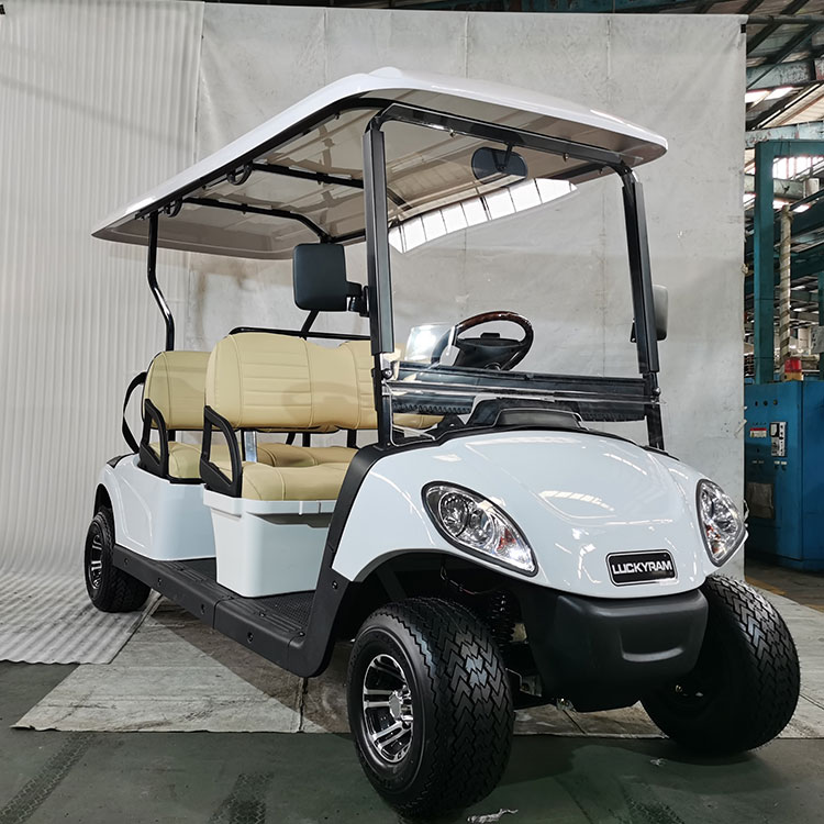 Električni golf voziček LuckyRam 4 Seater z litijevo baterijo se lahko uporablja na različnih mestih, kot so športna arena, vila, šole ali vaša tovarniška delavnica. Struktura je zelo preprosta, čista in priročna, veliko funkcionalnih konfiguracij širitve pa lahko izbirate. To je vozilo na kratke razdalje z visoko zmogljivostjo stroškov.