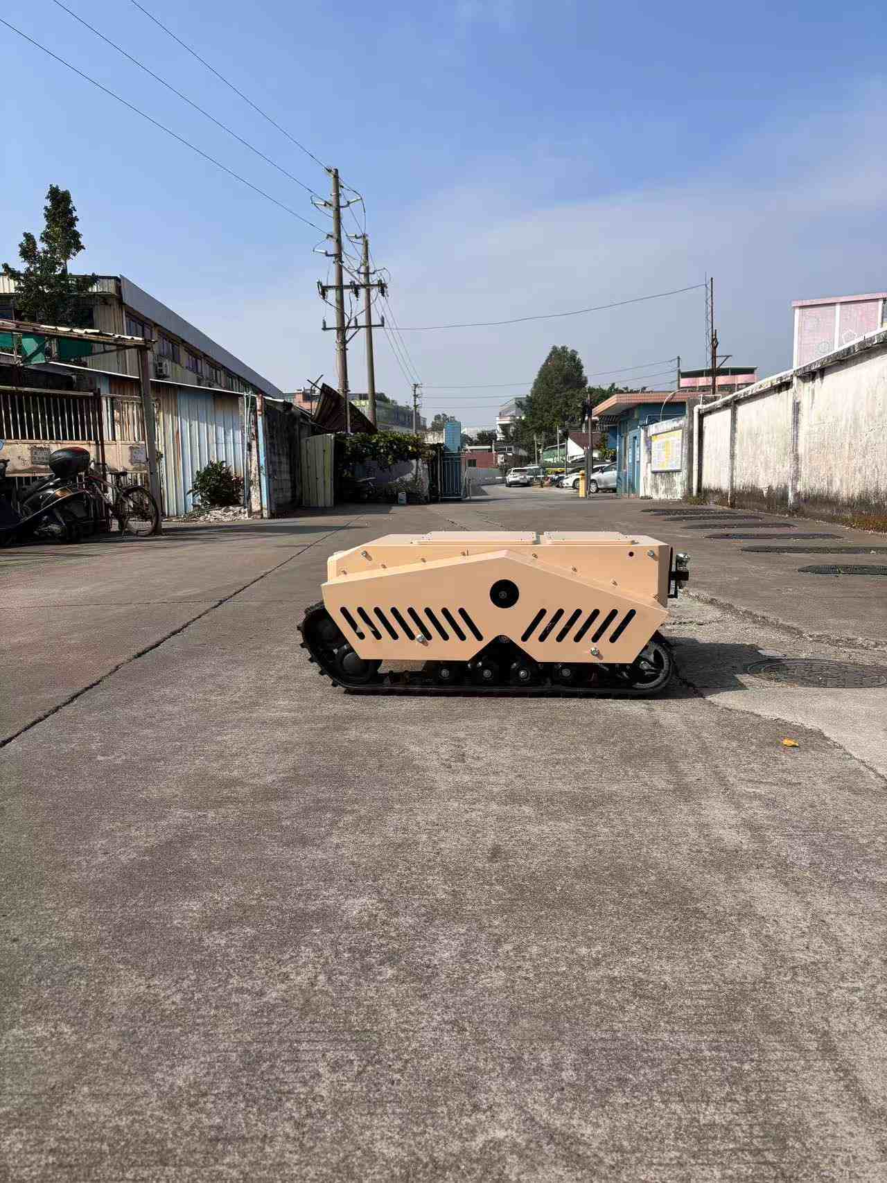 To vozilo, ki ga poganjata dva visokokakovostna 3kw motorja in je opremljeno z velikimi gosenicami, je popolno za prevoz po vseh terenih.